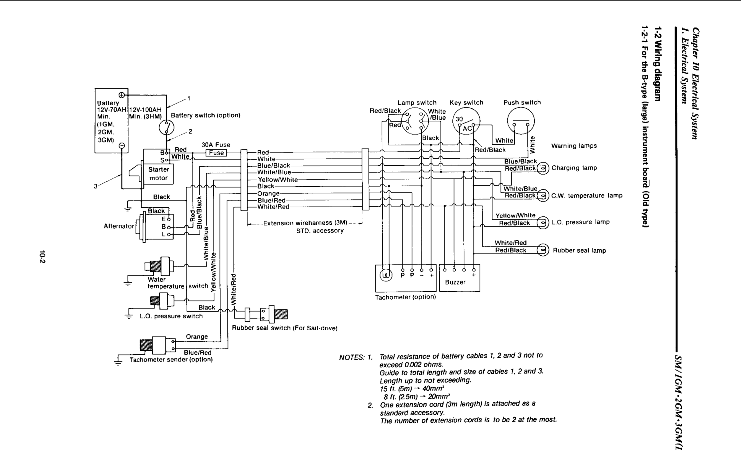 På figuren under så ser vi et litt mer komplisert styrestrømsskjema for motortypen Beta Marine 25 (Operators manual side 108):