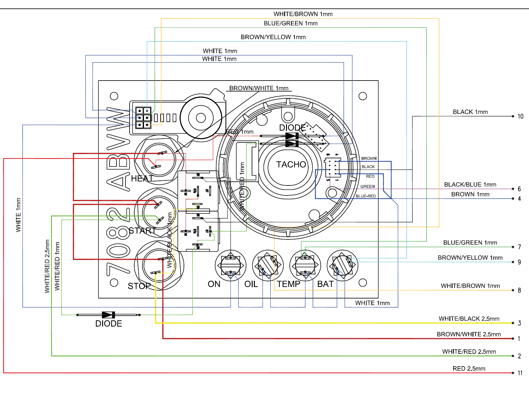 • Når motoren stoppes med “stop”-knappen, brytes dette releet og hele instrumentpanelet mister mating (akkurat som om du hadde vridd av en nøkkel).