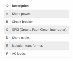 En skilletransformator ombord har det som sin primære oppgave å hindre elektrolyttisk eller galvanisk korrosjon som følge av at “båtjord” (lokal jord ombord i båten) er sammenkoblet med “landjord”. Figuren viser prinsippet: